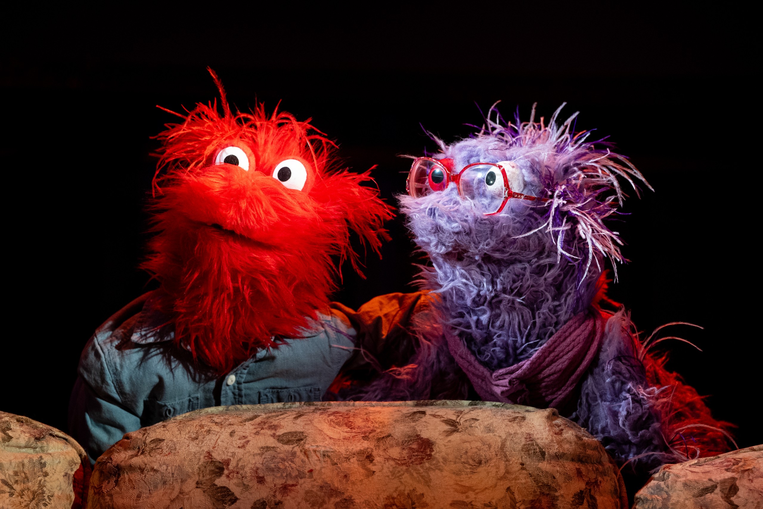 Pictured in various photos above: Fuzzy, Muzzy, Jojo, John Cariani (The Human), Cass Morgan (The Actress), and Teddy Yudain (The Puppeteer).